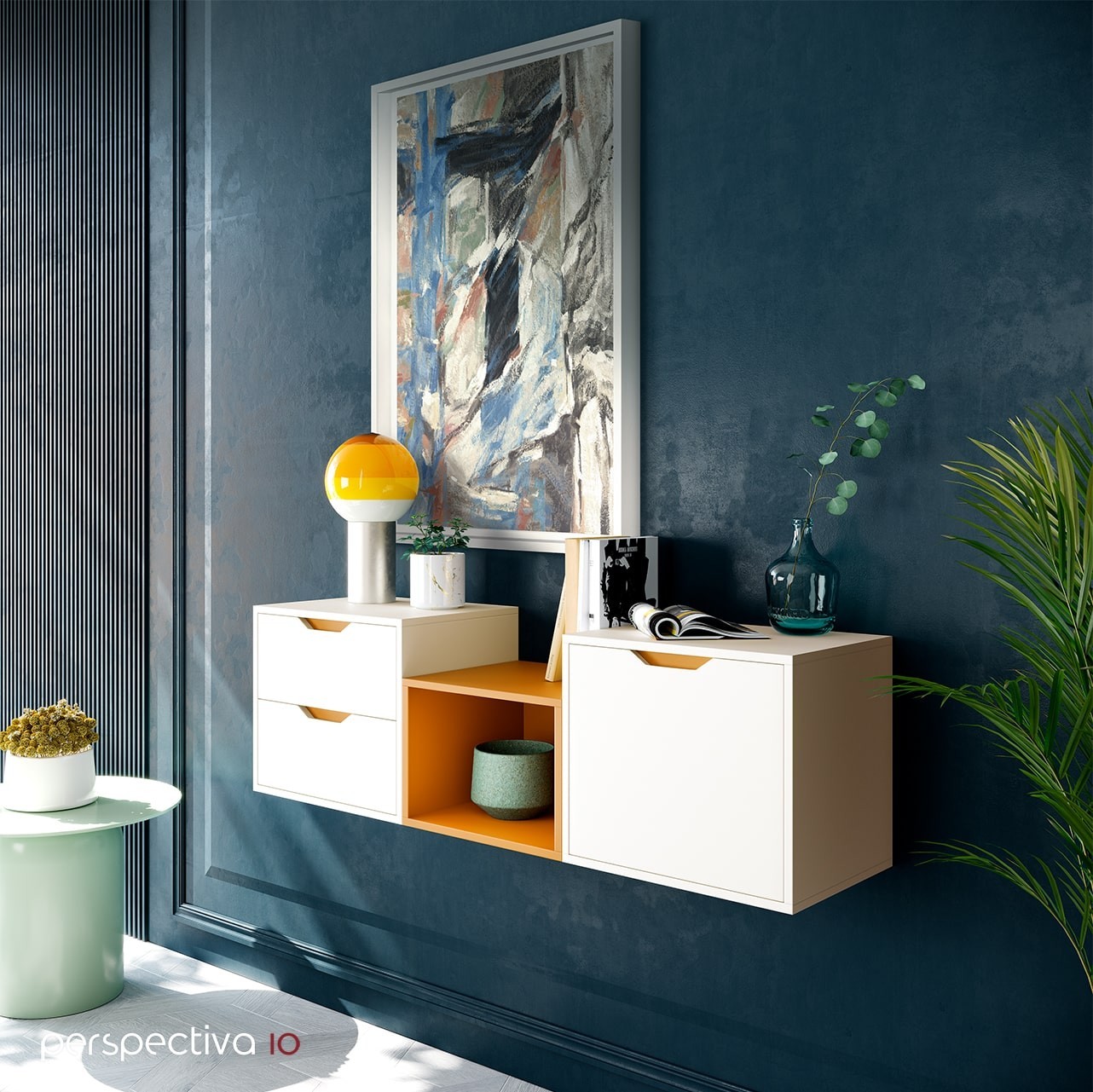 | Soporte | Marco Caja 09 blanco poro abierto con vitrina |